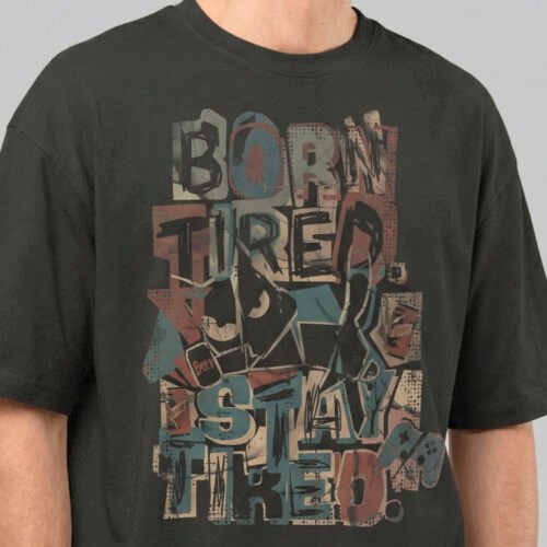 Born Tired Stay Tired – Washed Black Heavyweight Oversized T-Shirt