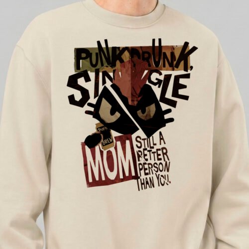Black Scowl “Punk Drunk Single Mom” Beige Heavyweight Crewneck | Oversized Streetwear Sweatshirt